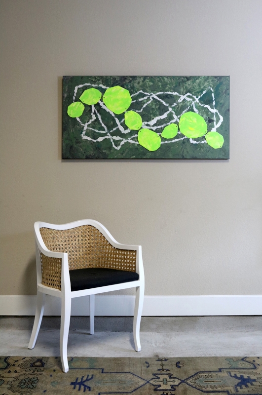 This piece is based on the theory proposed by Spiritual guru Ram Dass: to accept the truth of what is happening around us without judgement. It’s not good or bad, it just is. This shift towards is-ness was never more immediately noticeable than in my time on the tennis court. The composition in this artwork mimics the arbitrary relationship between the lines on the court and the path of the ball. The power that comes with detaching from judgement or not “telling ourselves a story" as Brené Brown would say, is that we create space for acceptance, possibilities and expansion. It’s time to drop the judgmental narrative in your head and accept what is.