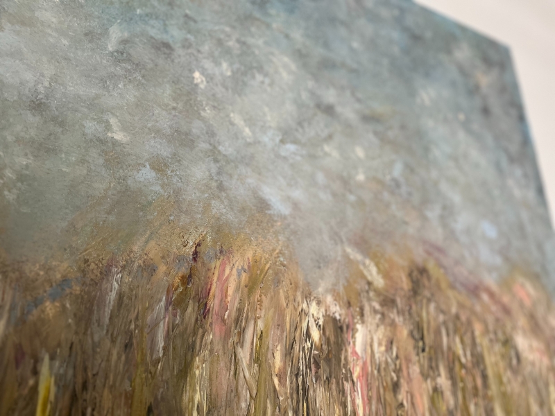 Oil paint and wax synergize to honor the magnificence of Texas Hill Country. The simplicity of a warm breeze and expansive sky is a beautiful blessing. This piece was inspired to carry the energy of serenity and peace into its space.