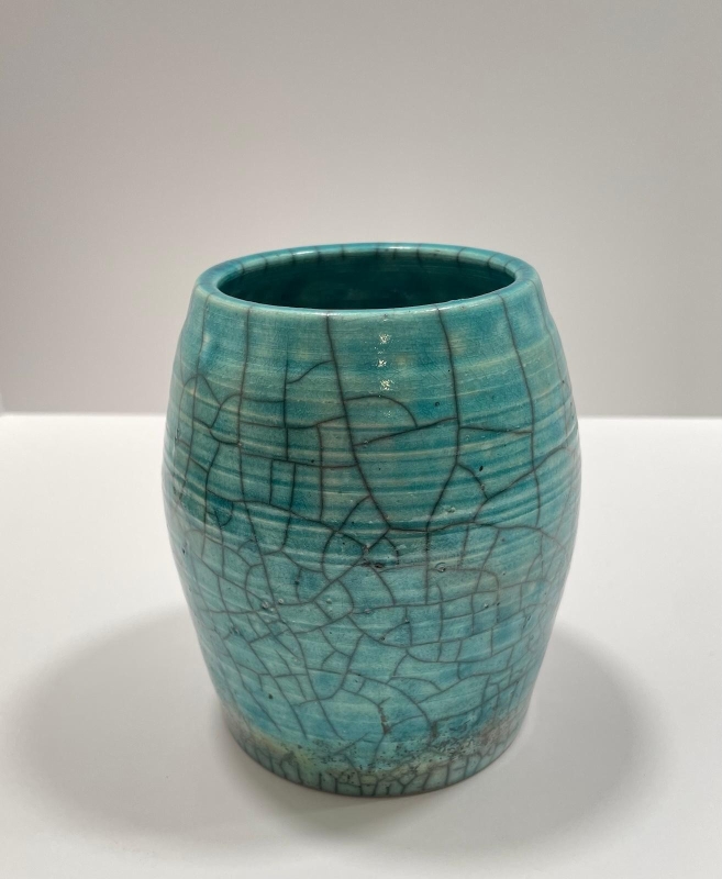 Crafted using the traditional Japanese Raku technique, this artwork embodies the alchemical journey of transformation. Removed from the kiln at peak heat and rapidly cooled in smoke, the clay undergoes elemental trials—fire, air, earth, and water. The resulting crackle, texture, and unpredictability speak to the ancient pursuit of turning the ordinary into the extraordinary.