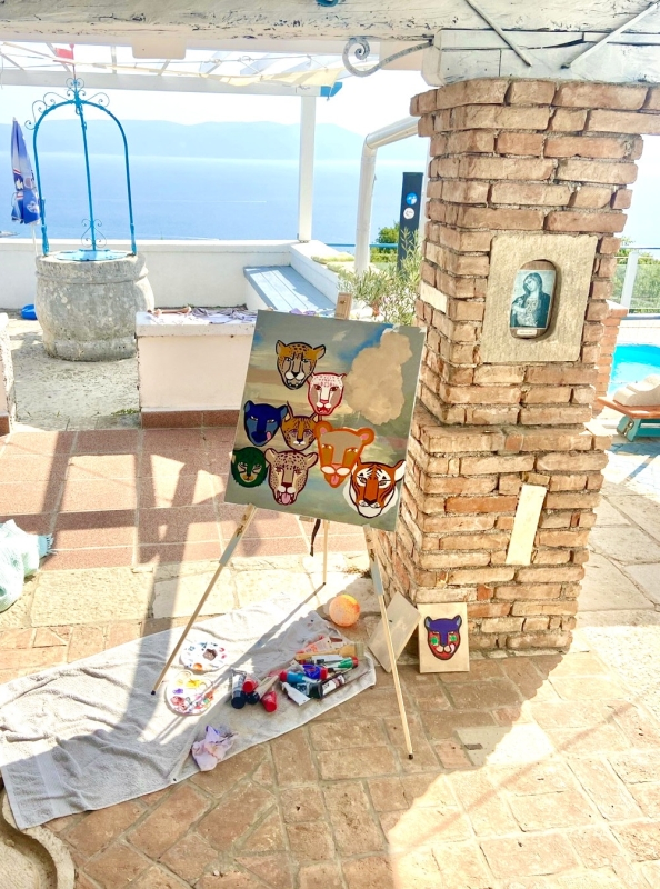 This piece of art has so many meanings, and you probably will have your own if you spend some time with it. You will probably even find your favorite cat. And maybe you'll notice that it can change from time to time, depending on your needs and emotional state. For me, it was a reminder to get out of my “beige” comfort zone. And to remember that it is safe out there, whichever emotion arises. It’s a personal army here for you! "My Secret Army" is very unique, and so is the future owner. The majority of this painting was created in Croatia during our family’s stay, amidst numerous personal challenges and setbacks. The canvas has journeyed across the globe with me and is now present here. It serves as a powerful reminder that we are capable of overcoming any obstacle.
